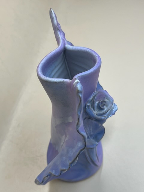 * "WAVE" Vase with Rose; Height: 17.5 cm, Width: 14 cm, Spout diameter: 5 cm.