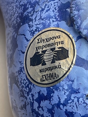 For sale: Unique, hand-crafted and hand-painted artistic pottery from Greece. Signed with the original manufacturer's label: Σύγχρονα χειροποίητα κεραμικά ΣΥΝΙΑ (Modern Hand-Made Pottery – Synia).